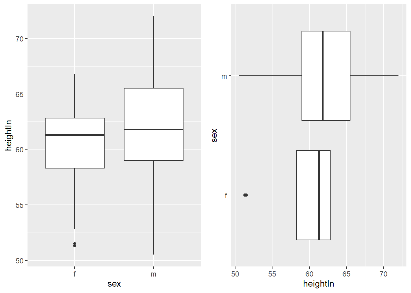 plot1 <- ggplot(heightweight, aes(x = sex, y = heightIn)) +
