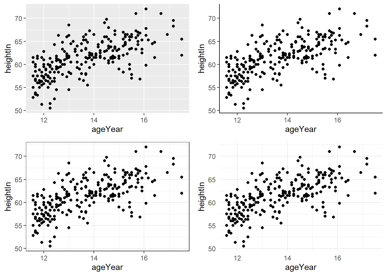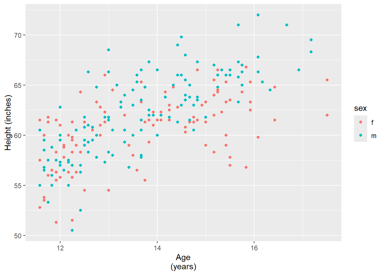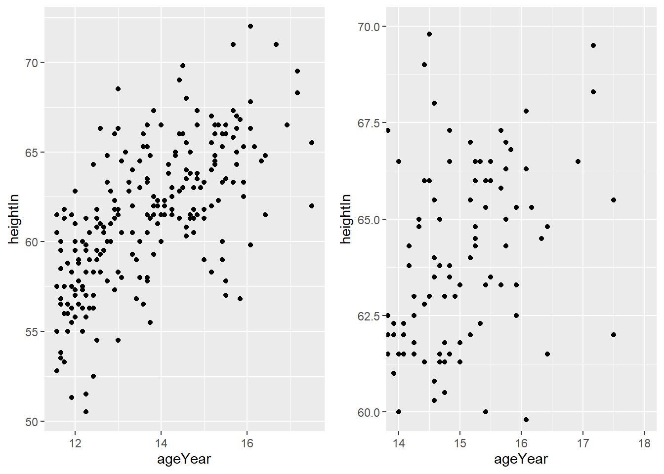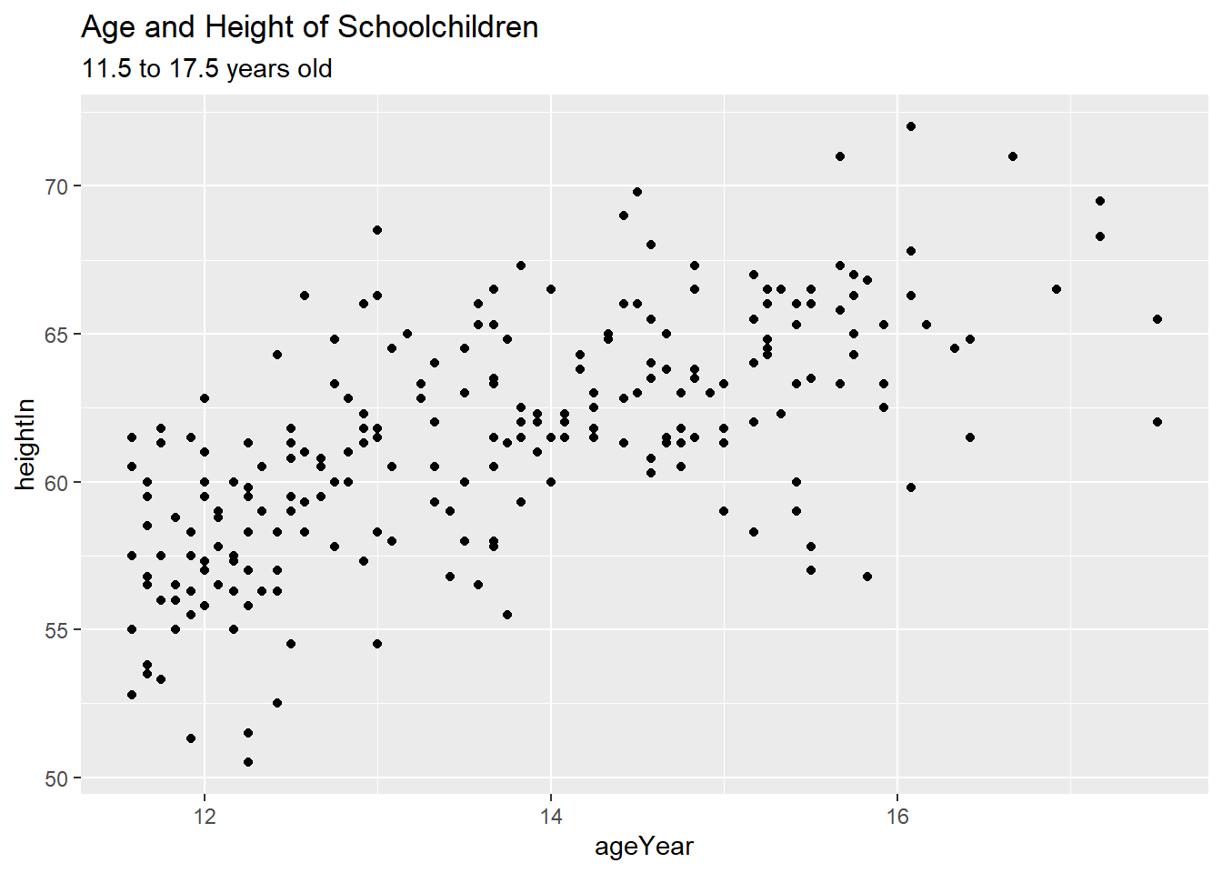 hw_plot <- ggplot(heightweight, aes(x = ageYear, y = heightIn)) +