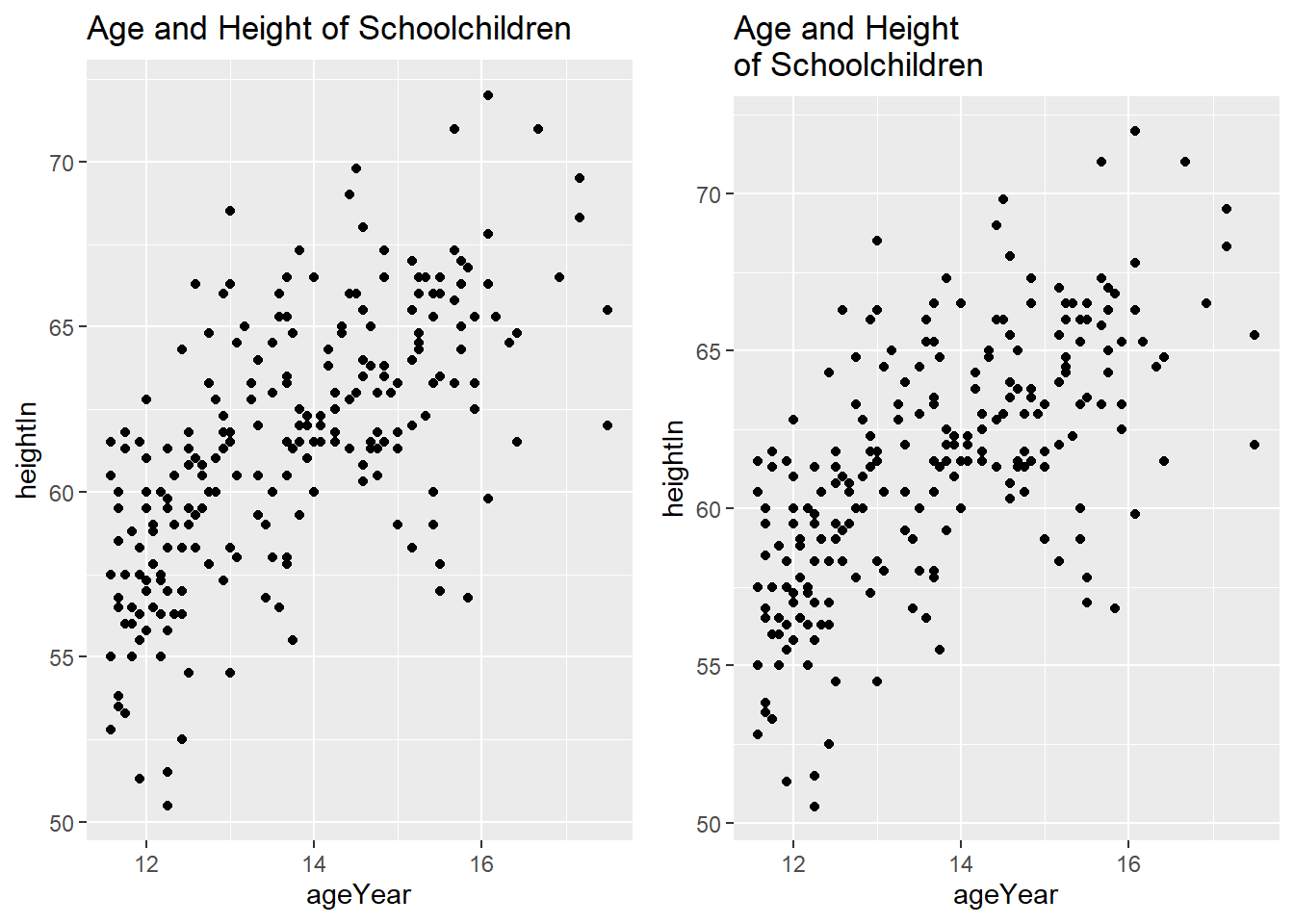 labs(title = "Age and Height\nof Schoolchildren")