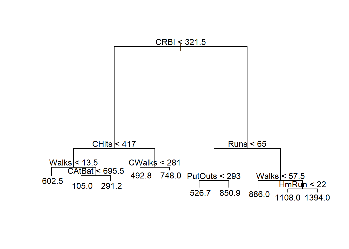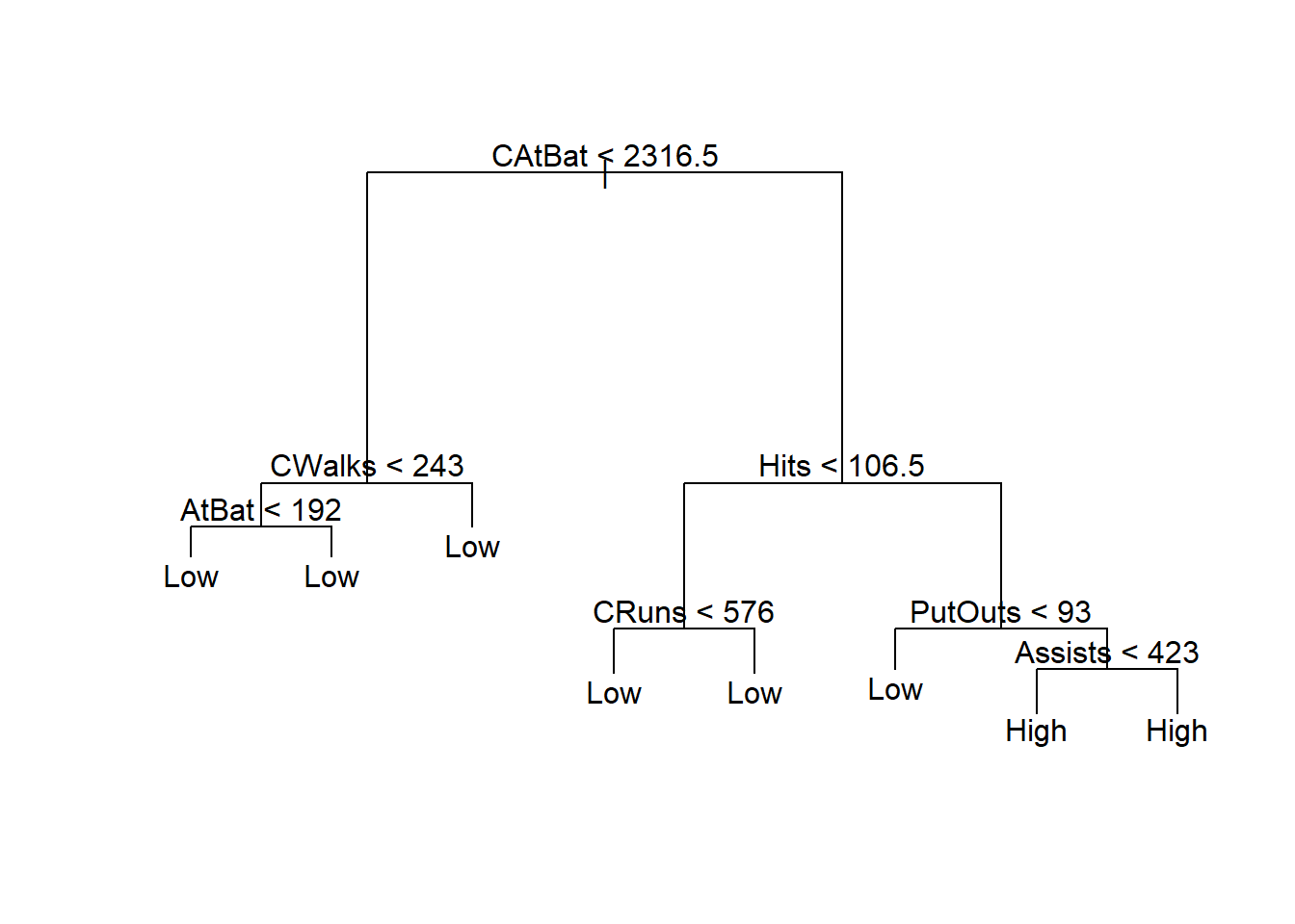 Hitters_test <- Hitters[-index, ]# fit classification tree