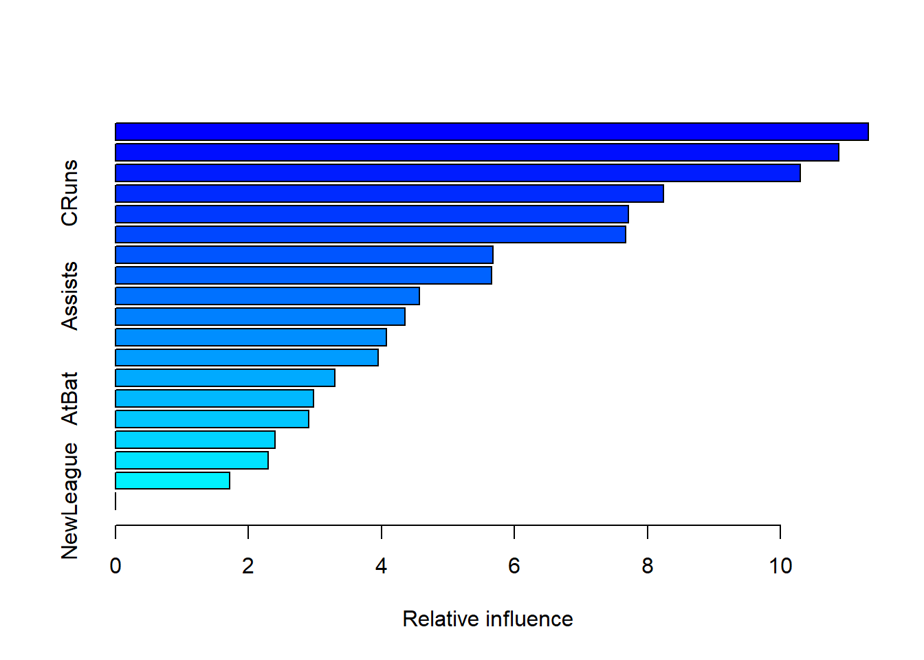 boost_fit <- gbm(Salary ~., data = Hitters_train, distribution = "gaussian", n.trees = 5000,