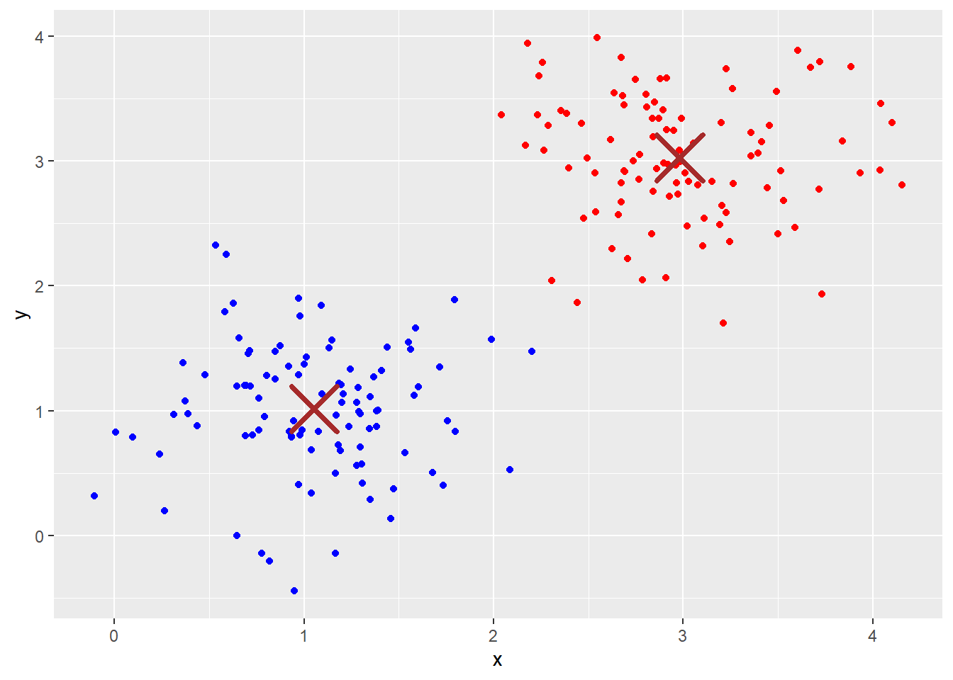 ## 3 -0.6246222 -0.01435636Visualize the clusters: